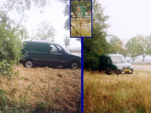![]() | Op de plaats van de Citroen-Berlingo aangekomen stapte de BOA al uit. Hij herkende mij van de Visuele Roodlicht Controle van Schoorldam (Vry 7 feb 2003 - 16:45 - N504/N9). Naar zijn zeggen stond de apparatuur afgesteld op 131/87km/hr. Automobilisten hebben 3km/hr extra marge gekregen. Ik heb dit zelf helaas niet gezien, daar ik daarvoor een greppeltje moest oversteken en me ook daarmee in de nabije omgeving van de snelweg zou bevinden. |