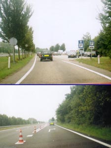 ![]() | Deze controle vond ik iets netter in elkaar zitten dan die van 25 mei 2002. Dit was een 2 traps controle met een terugflitser aan de overzijde. De fuik was gesitueerd op de snelweg (A7), rijdend vanaf Den Oever, richting Hoorn en Amsterdam. Vlak na Den Oever, staat een hotel vd Valk, met aan weerszijde een parkeer terrein. Deze is gelegen voor de afrit Wieringerwerf. Naast dit stuk snelweg ligt een parallelweg voor het langzame en lokale verkeer. |